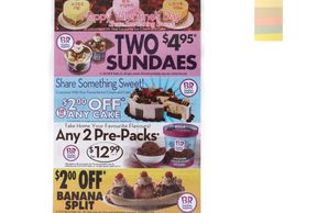 60 lbs offset 4 color fronts 1 color back with breakaway perf. 4"x6" placed on newspapers , magazines, mailboxes and apartment doors. Used to draw customers into stores.